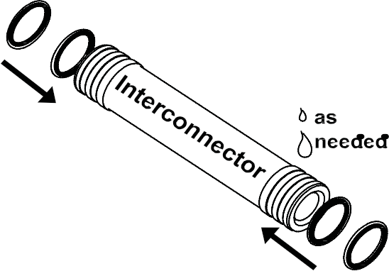 (2) 在膜元件連接件上裝上 O 型圈,安裝時涂上甘油潤滑,并小心的安裝防止 O 型圈被刮損。在插入產水管之前,將組裝好的適配器放在一個干凈的地方。