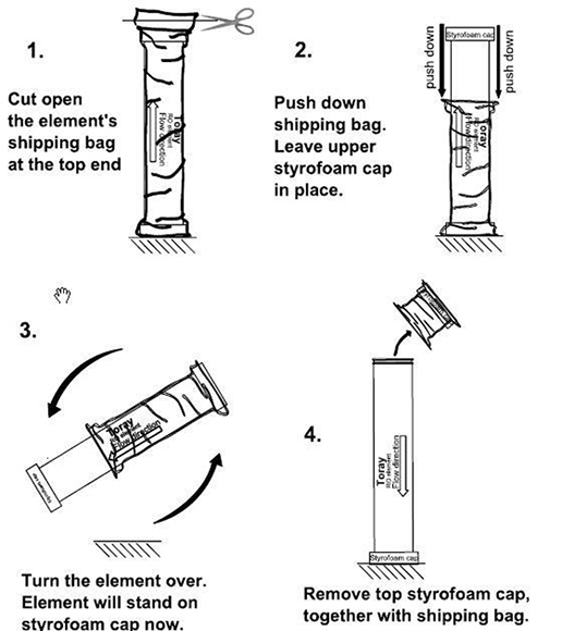 為了方便確定方向和說明,東麗膜元件在外殼內有箭頭標示方向。此箭頭并不表示為必須遵守的安裝方向。