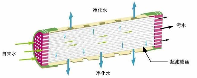 超濾孔徑大約在0.001-0.1UM之間,切割分子量約在 6.000-100.000Dalton之間。超濾對水中的懸浮物、膠體、大分子物質(zhì)、細菌等幾乎可以完全截留,對BOD和COD的去除率在20%-60%,對小分子有機物和無機離子幾乎不截留。