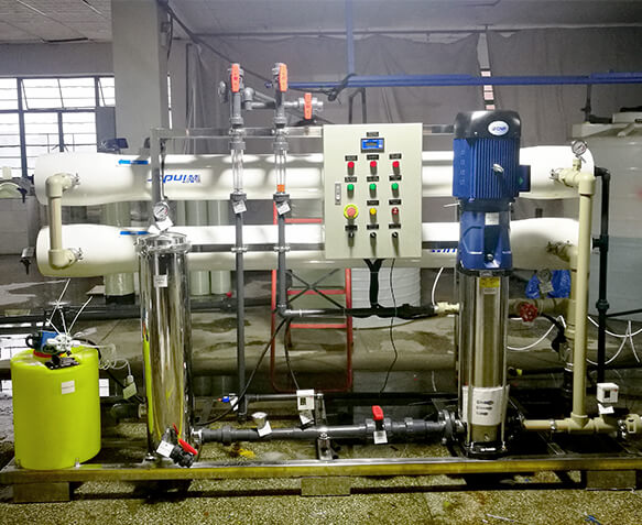 預(yù)處理常由石英砂過濾裝置、加藥裝置,保安過濾器組成,主要目的是去除原水中含有的泥沙、鐵銹、膠體物質(zhì)、懸浮物;色素、異味、生化有機(jī)物;降低水的余氨值及農(nóng)藥污染等有害的物質(zhì)。如果原水中鈣鎂離子含量較高時(shí),還需增加軟水裝置,從而延長反滲透膜的使用壽命。