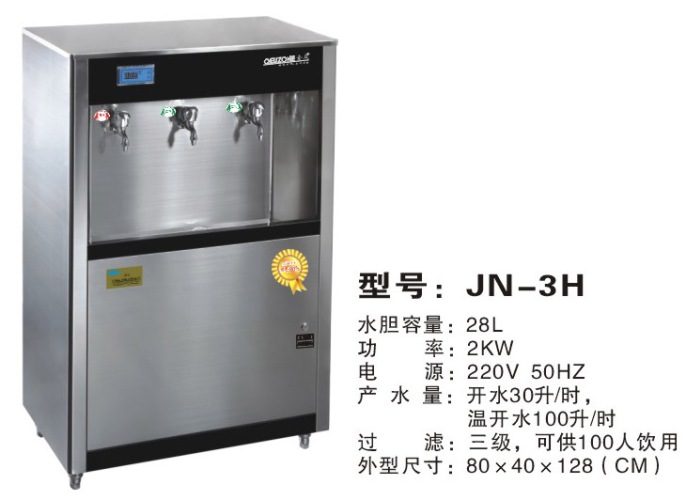 v產(chǎn)水量:開水30L/時、溫開水150L/時、三級過濾、可供100人飲用