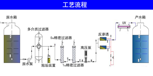 預處理系統一般包括原水泵、加藥裝置、石英砂過濾器、活性炭過濾器、精密過濾器等。其主要作用是降低原水的污染指數和余氯等其他雜質,達到反滲透的進水要求。預處理系統的設備配置應該根據原水的具體情況而定。